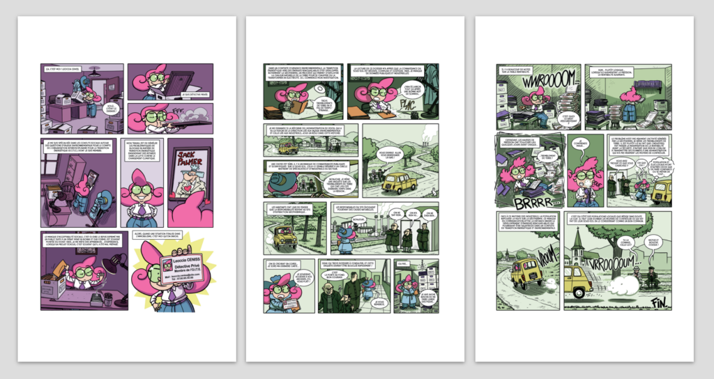 Fidèle à la démarche éditoriale d’Ébullitions, l’article est accompagné d’une bande dessinée originale, mettant en scène les aventures de Leoccia Cenis (anagramme de sciences sociales) qui est une enquêtrice en sciences sociales sur la transition énergétique. Cette BD propose une approche complémentaire et accessible des enjeux soulevés, contribuant à renouveler les formes de médiation scientifique.