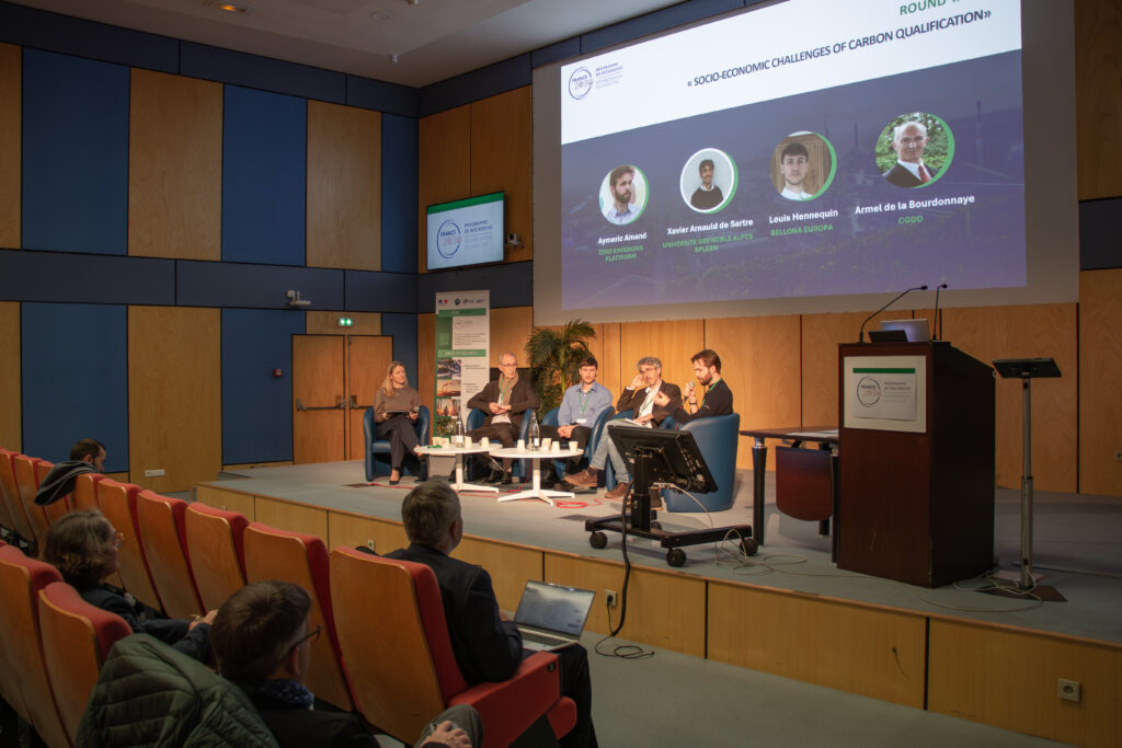 Louis Hennequin (Bellona), Xavier Arnauld de Sartre (Université de Grenoble Alpes, SPLEEN), Aymeric Amand (Zero Emissions Platform) et Armel de la Bourdonnaye (CGDD) ont discuté des enjeux socio-économiques liés à la qualification du carbone, mettant en lumière les implications réglementaires et sociales pour l’industrie.