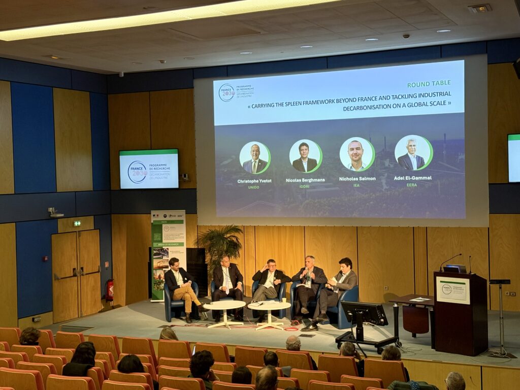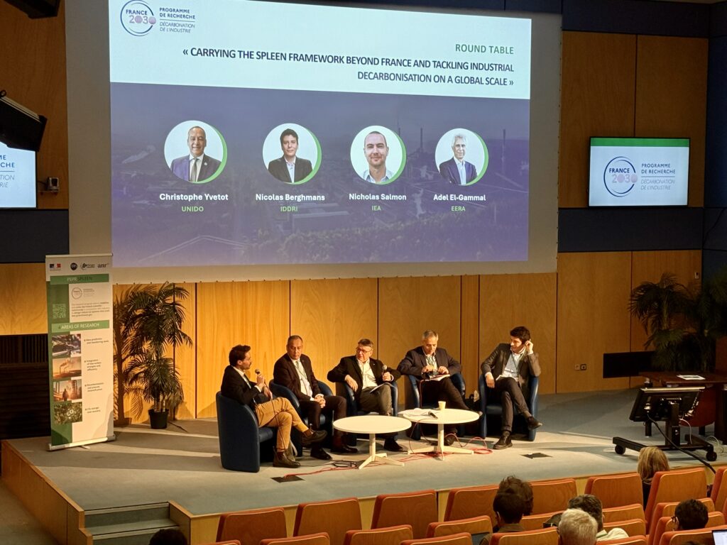 La matinée s’est poursuivie par la table ronde “Carrying the SPLEEN framework beyond France and tackling industrial decarbonisation on a global scale”, réunissant Christophe Yvetot (UNIDO), Nicholas Salmon (IEA), Antonio Pires da Cruz (IFPEN) et Nicolas Berghmans (IDDRI), qui ont échangé sur la coopération internationale et les stratégies globales pour réduire les émissions industrielles.
